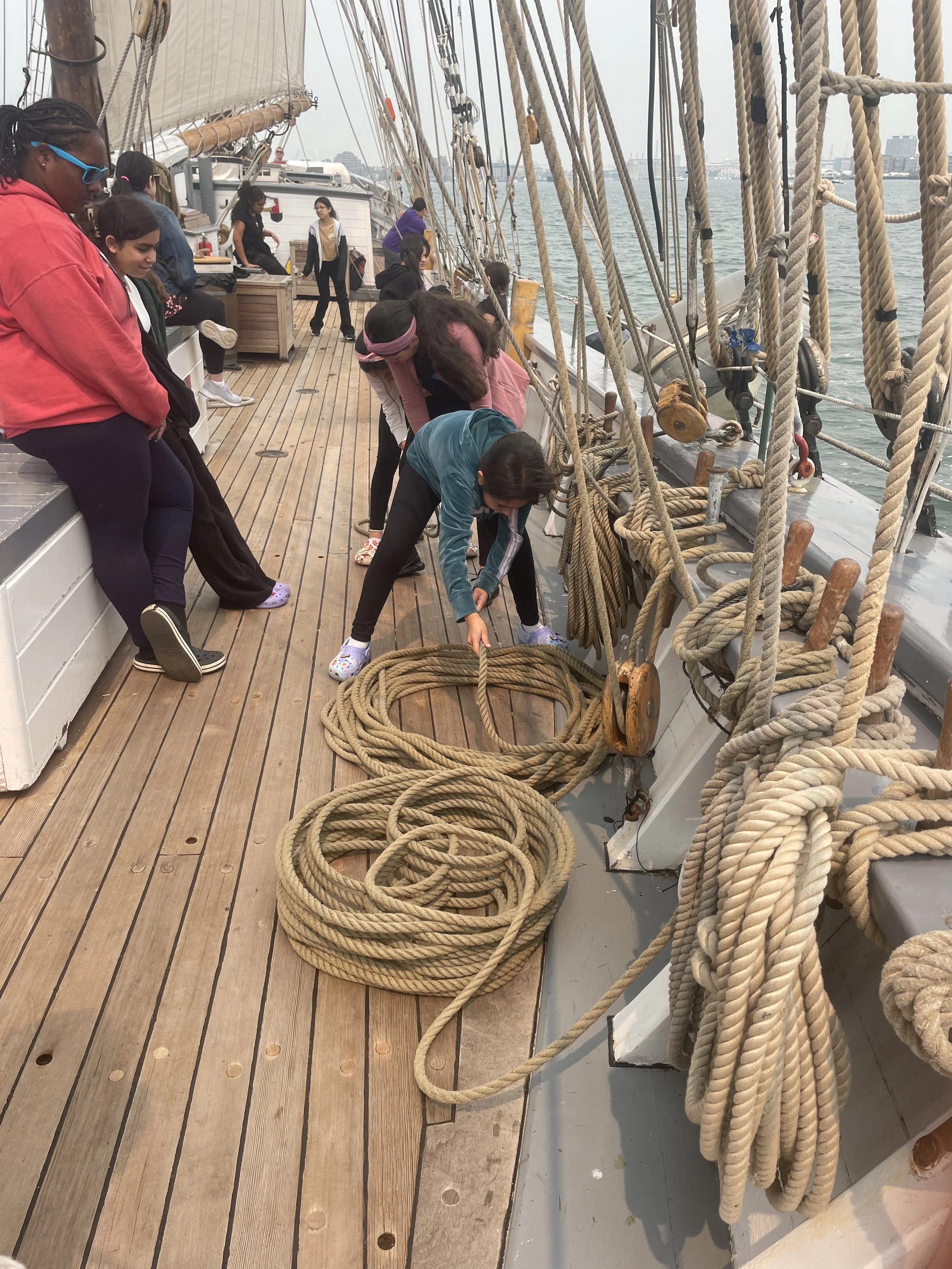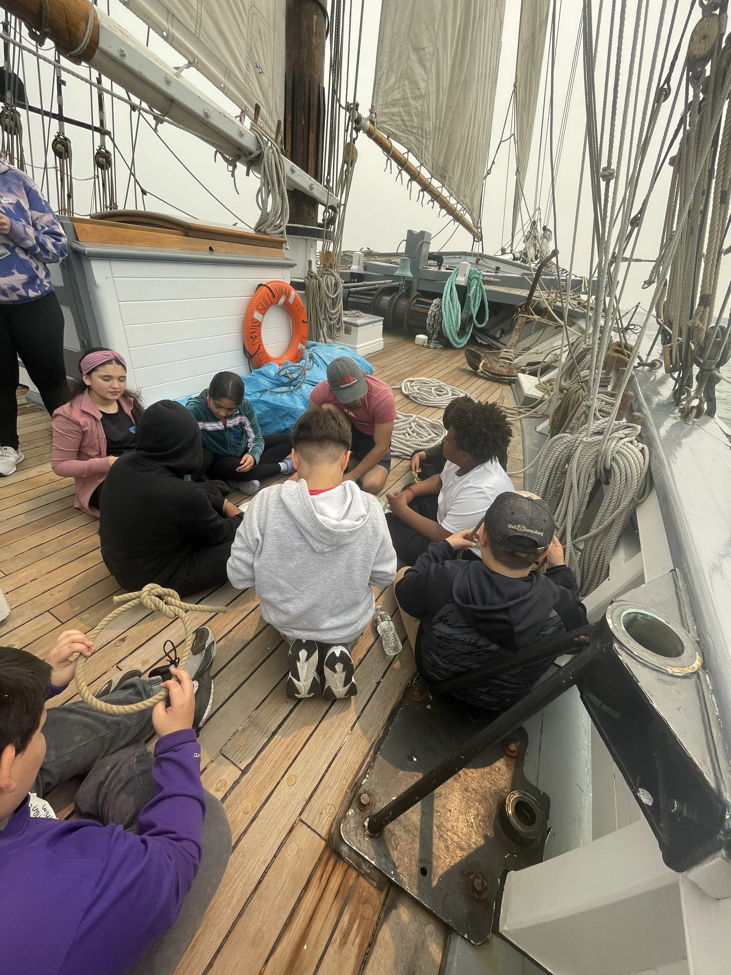 We had our daily muster this morning to discuss the course of the day, followed by our customary cleaning and deck washing. While we awaited the arrival of the 5th-grade students, we prepared our sails for the day ahead. After that, we greeted the students and engaged them in a little game called Captain's Coming. We descended toward our wonderful ship, Denny. The captain then welcomed the students on board Denny and gave them a brief safety lecture. Following the safety briefing, we standby to get underway, indicating that we were heading out for a sail. After the students and crew raised the sails, we divided into three groups to work on our lessons. The topics covered in today's classes were knots, water quality, and maritime history. Then, within the allotted time, each group rotated through all three stations. When the lessons were over, we prepared to take in the sails to dock. A magnificent lunch was waiting for us when we returned safely to the port. It was nice that the students and chaperones stayed on board to eat lunch with us. We learned more about the students, including their favorite foods, pastimes, and apps they like such as Tiktoks. We said our goodbyes to the kids and chaperones after lunch. After saying our goodbyes we did some minor projects sure as small boat training & varnishing which then concluded an end of a successful work day.