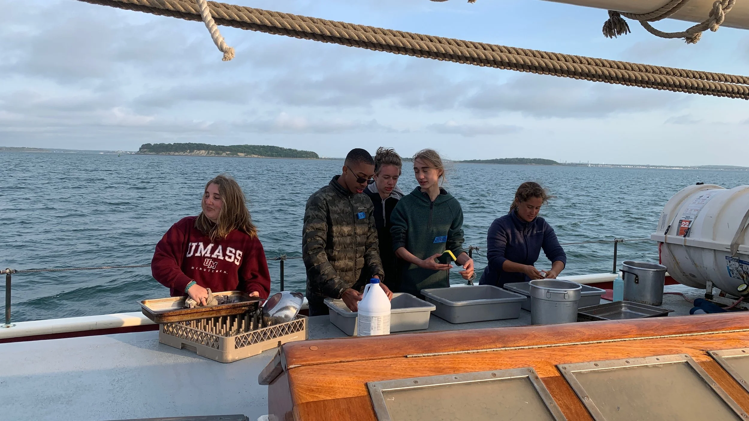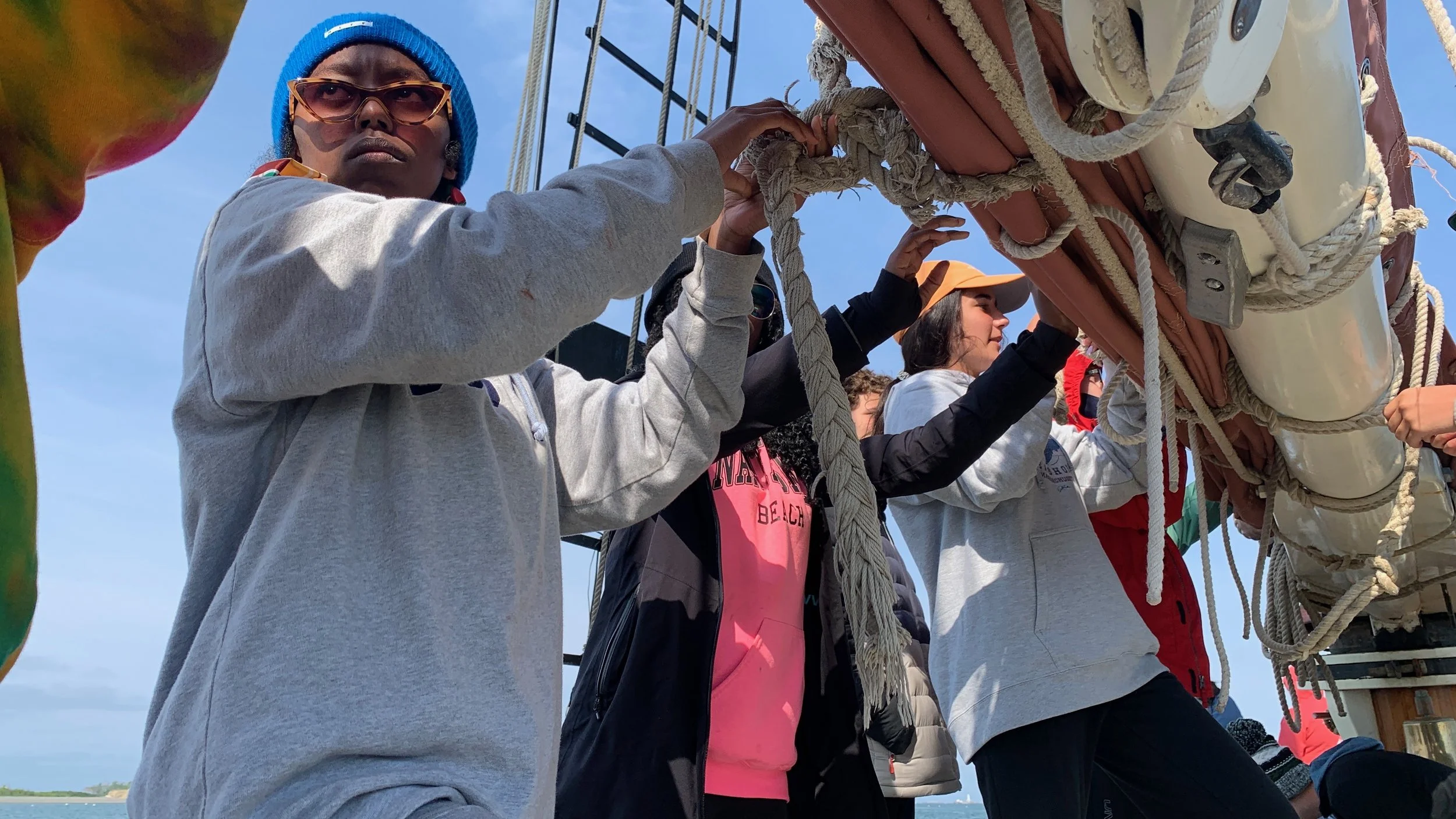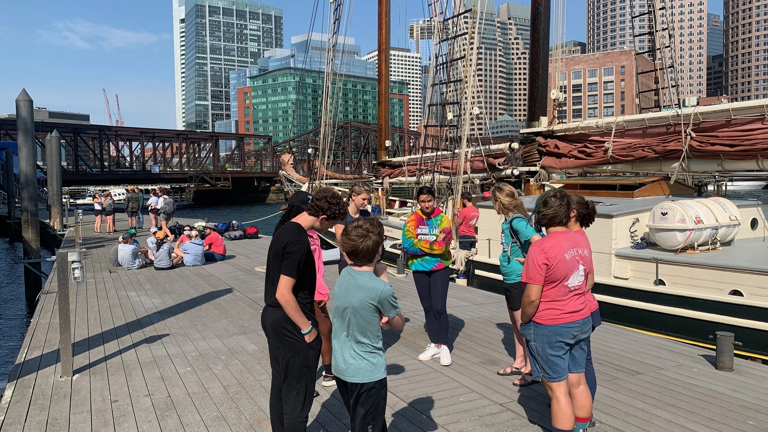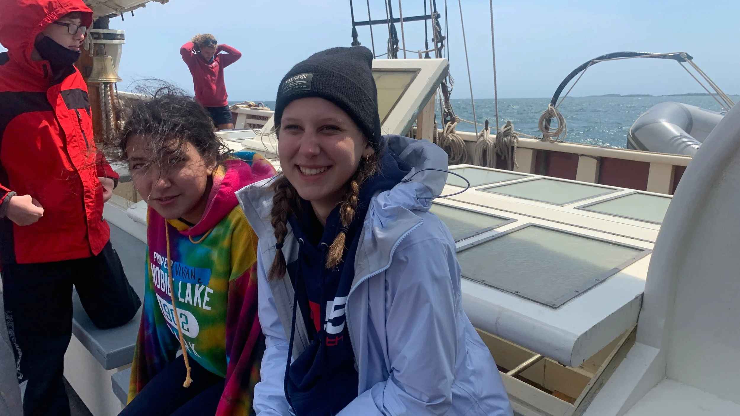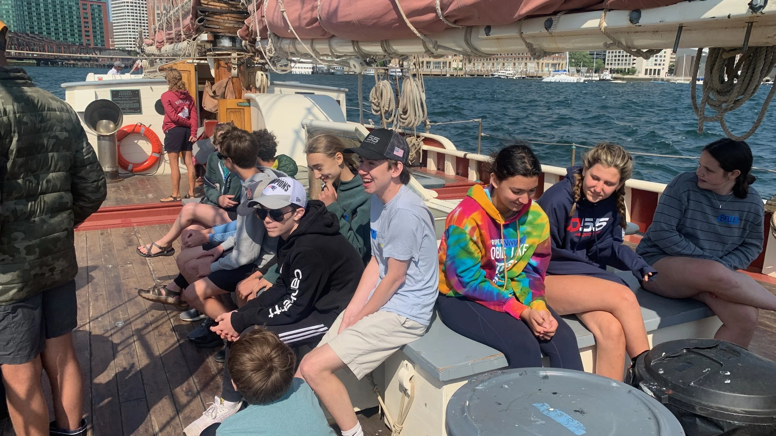Today we boarded the Roseway and got started with all the safety procedures and tours. After this, we started touring the boat and figuring out where the fire extinguishers were in case of emergency. Soon after, we all took part in setting the sails. First, we set the main sail and then moved onto the fore, jumbo and the jib. After a delicious sandwich lunch, we broke into our three different watch groups. In our watches we did three different rotations. We had lessons on seamanship and we got to take turns being on bow watch and steering the ship. Another part of this was active watch. We learned how to keep our eyes on the water and be ready to alert the captain if we saw anything. Later in the afternoon we got to learn and see how all the sails come down and get folded. We also got to learn and see how to sail onto the hook which is how the crew drops the anchor. We had dinner and then did our chores which included cleaning up our dishes. We ended the night with a skit for the introduction to anchor watch and some fun board games!