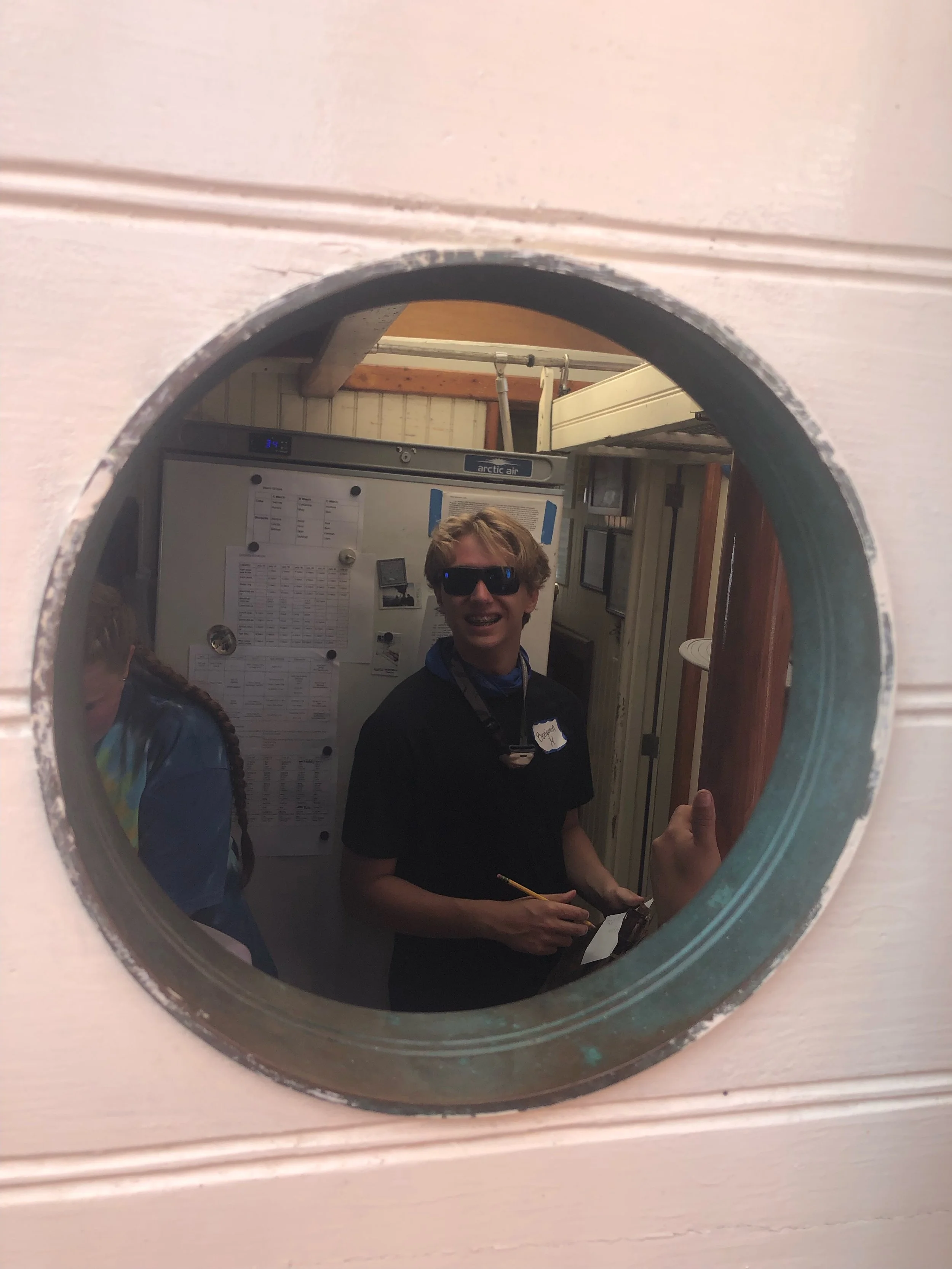Today marks the first day of the trip. The Roseway greeted us in the harbor at eleven. The first event of the day was fueling. The ship pulled up alongside a dock and it began to top off its fuel supply. The ship had fuel, the crew was just making sure they had the maximum amount of fuel possible. As the gas was being pumped into the tank on the port side the student watches placed fenders. We acted as roaming fenders to ensure the boat didn’t scrape up against the dock. Once the boat was under way out of the harbor we finally settled into our three watch groups A, B, and C. These groups are there so we can be easily managed and so that we can work together to complete tasks more easily.