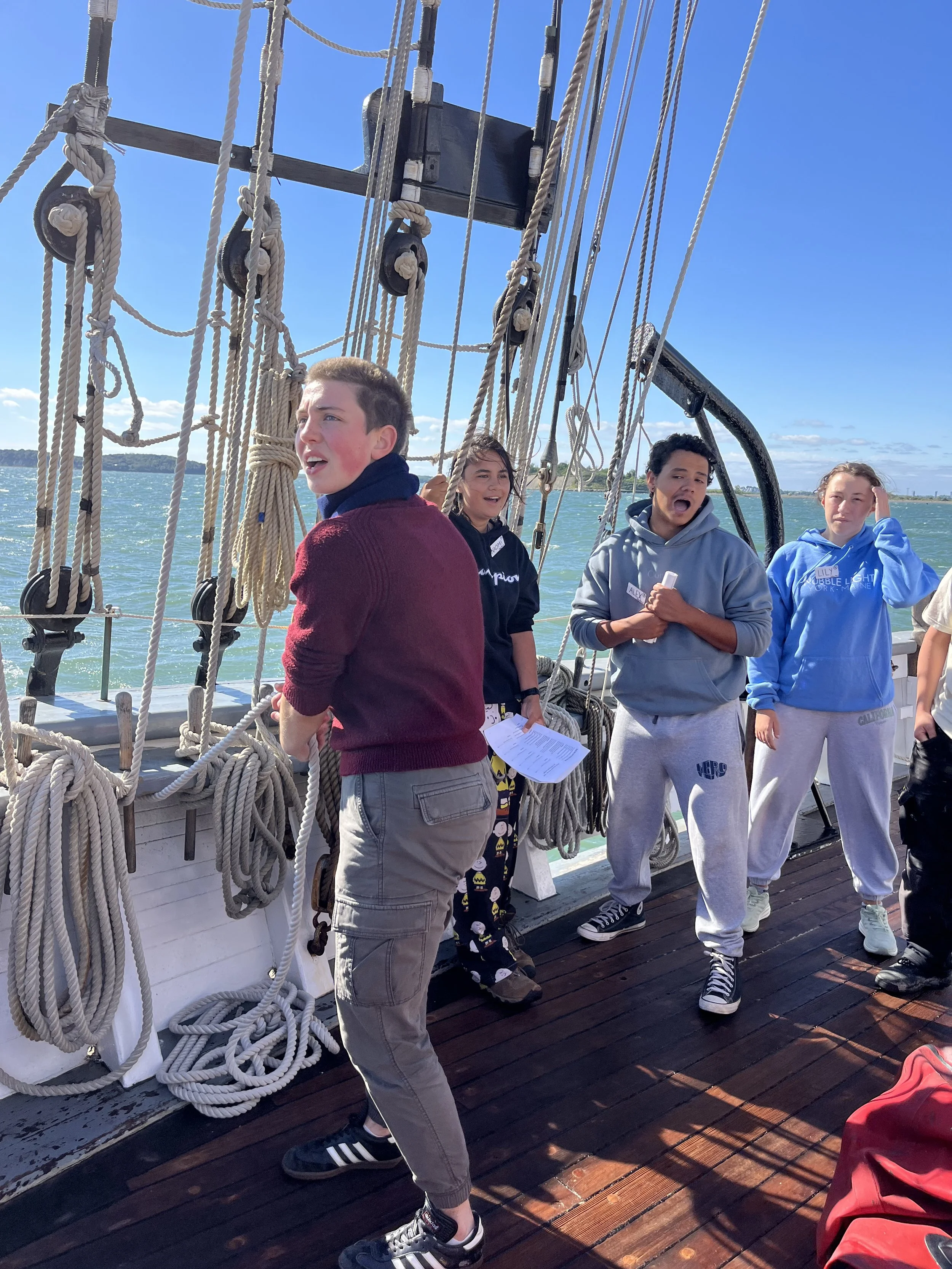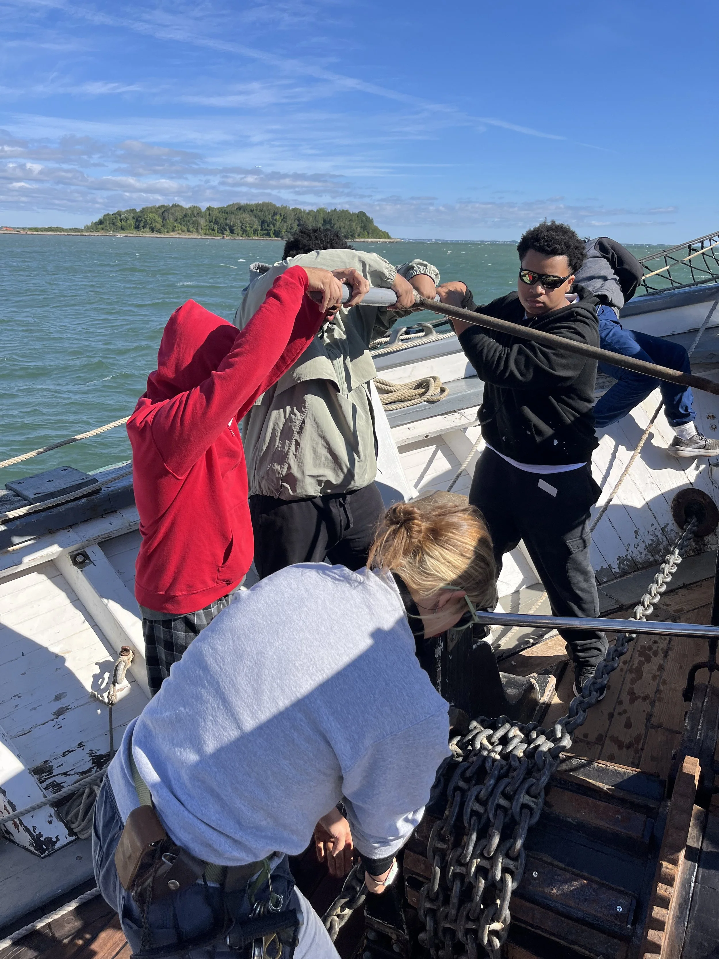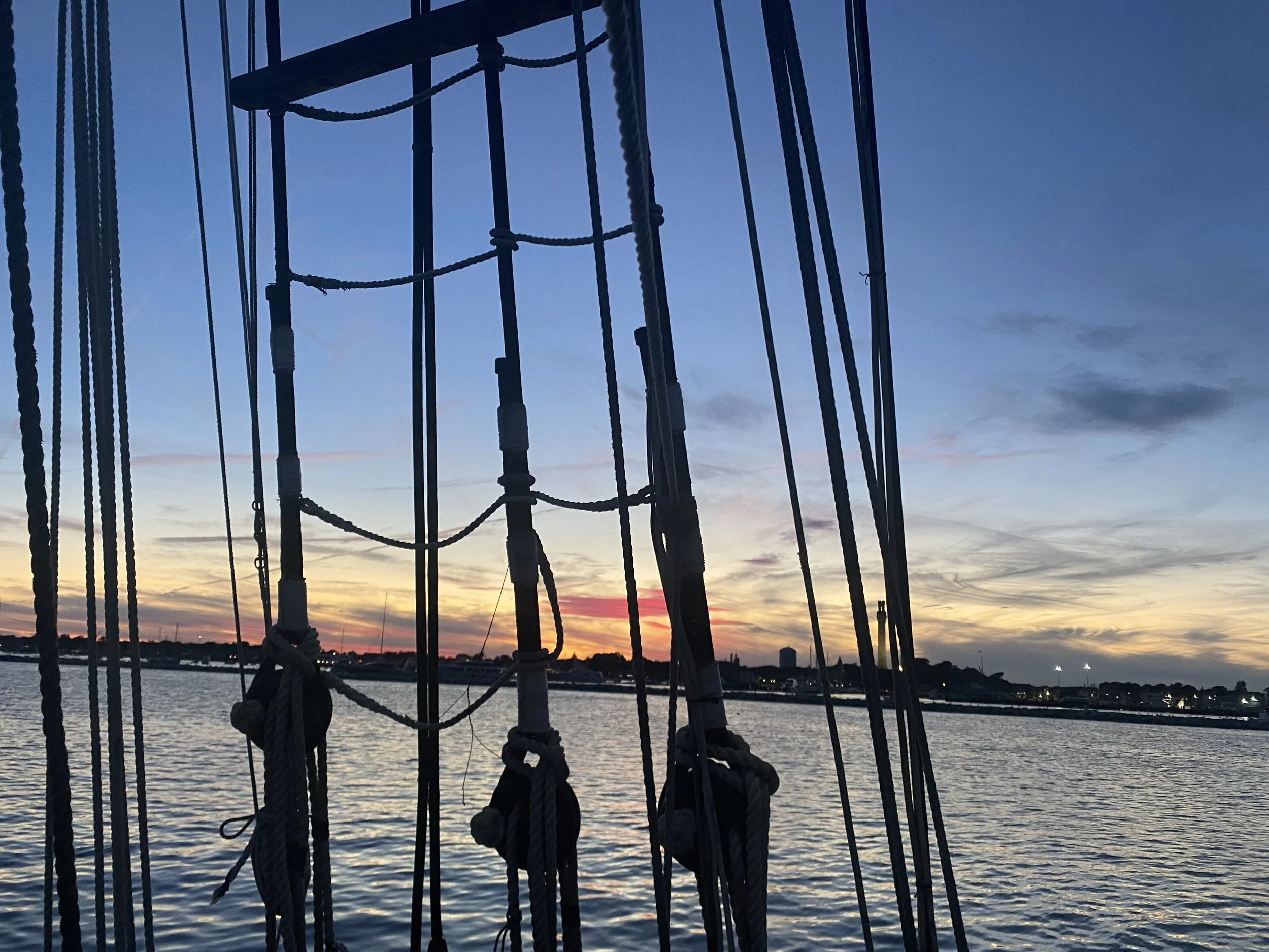 Hey Mom! im doing great. Today was fun meeting all the new people and actually talking to them was fun we all bonded on are shared sea sickness dont worry we are all fine. Crazy winds today as we sailed along Massachusetts Bay but all i want to tell you is that im safe and sound