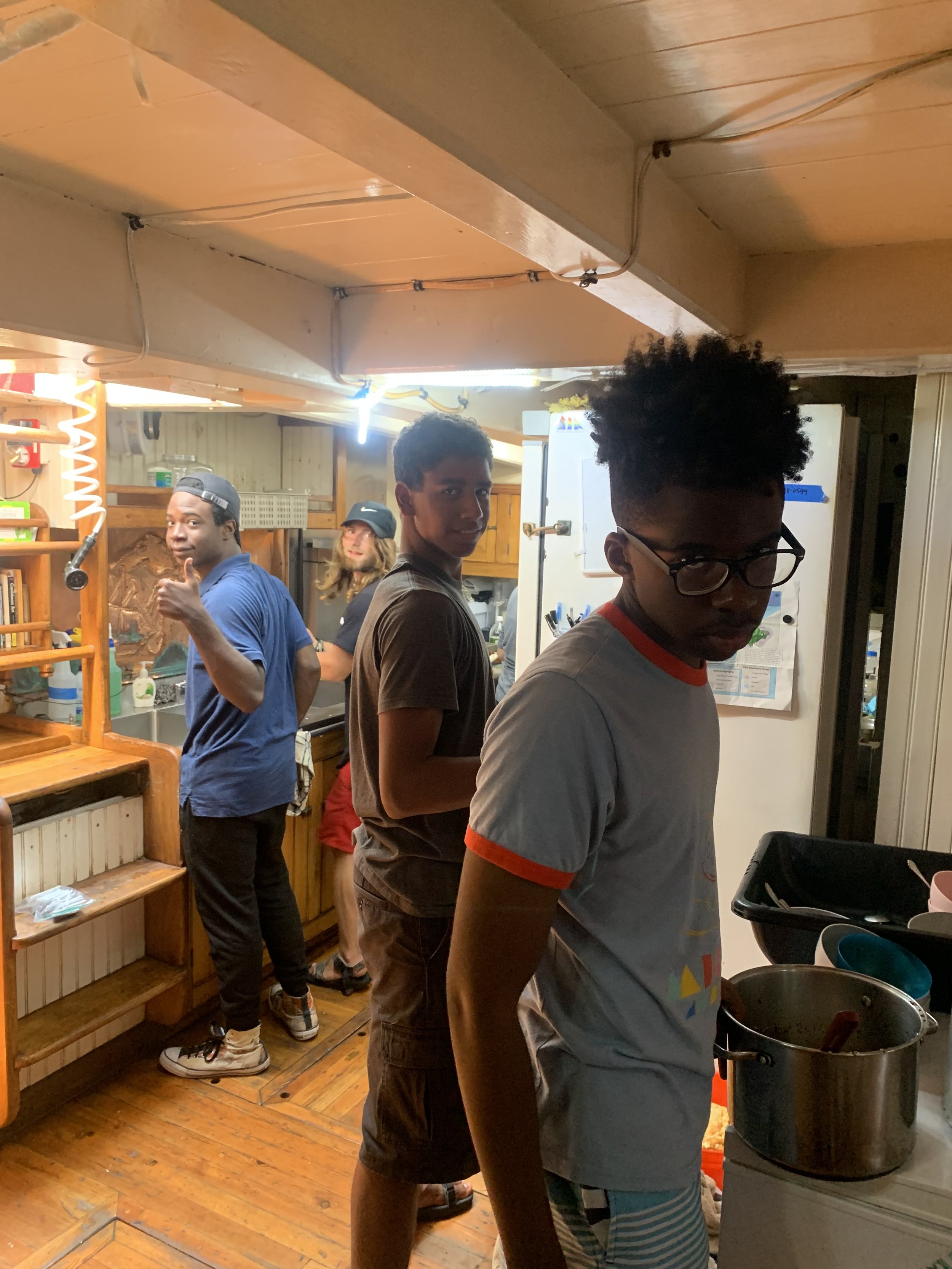 The boat is great but it is very hot out. The waves make almost everything hard, but at night the waves are calm it’s not hot out it just feels perfect. For the last three nights I’ve been sleeping out on deck with everyone else. One of my friends Kai thought of names for all the crew members, it’s so funny. He’s on anchor watch with me along with Ace. There’s one last thing I want to write about, we had swim call yesterday it was very fun. Almost everyone passed the swim test, the salt water tasted horrible though.