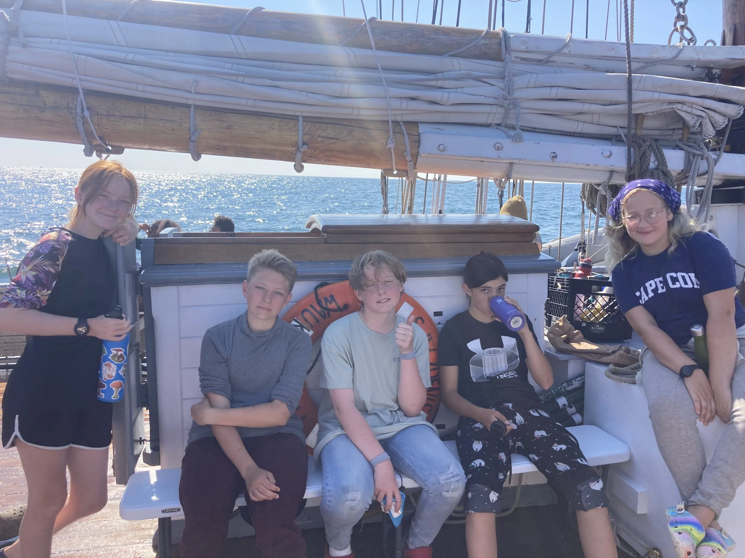I hate getting seasick but my friends are there to help me. I’ve learned about knot tying and how to set sail. It’s super hot but I’m glad we had a swim call yesterday. I’ve seen a shark and seals but I’m hoping to see a whale. Last night on anchor watch I saw bioluminescence. If was really cool. I’ve also seen krill and moon jellyfish. Squid are the only thing I really want to see other than whales.