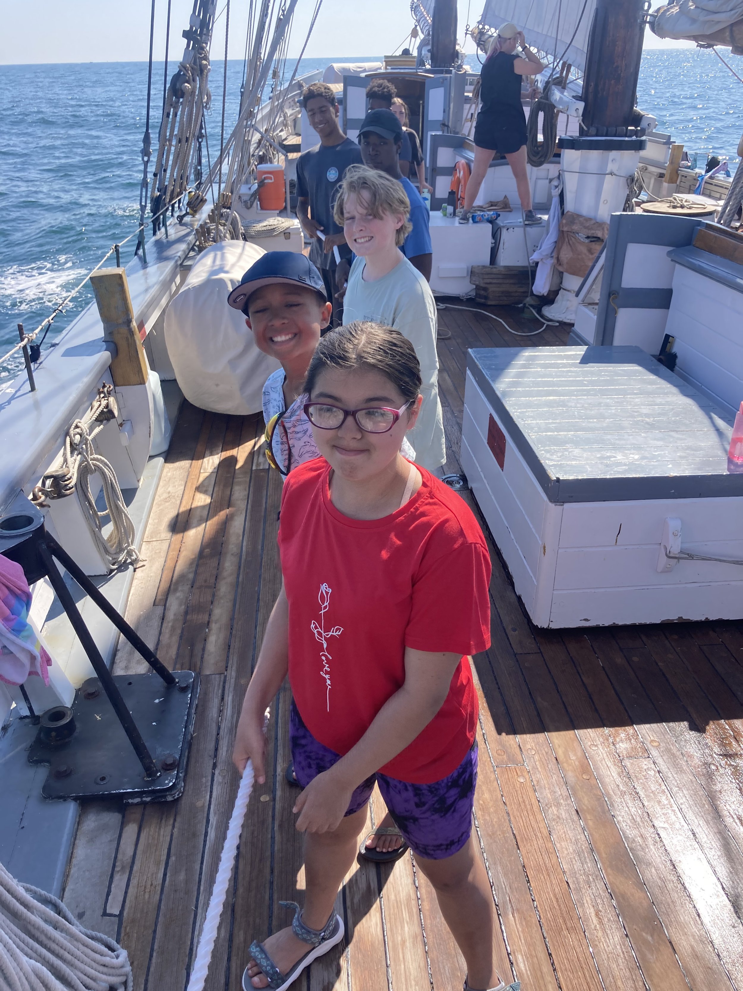 The first day was definitely a little weird as I had never sailed before but I quickly got used to the rockiness of the ship and just being on water in general. Besides the fact of being hot and tired I really enjoyed learning about the sails and different coils; working coil, and the balentine. Also how to do different knots. at first I thought I was going to have a hard time falling asleep but it was surprisingly not due to all of the activities we did throughout the day that tired me out. We’re now on day six and I’m enjoying my time on the boat, minus my terrible sunburn!