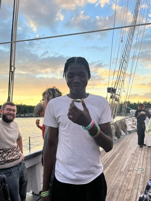 Les choses que je fais sur le bateau m'intéressent de plus en plus car avant je n'aimais presque pas ça puisque je ne savais pas en faire certaines, je passe un bon moment.