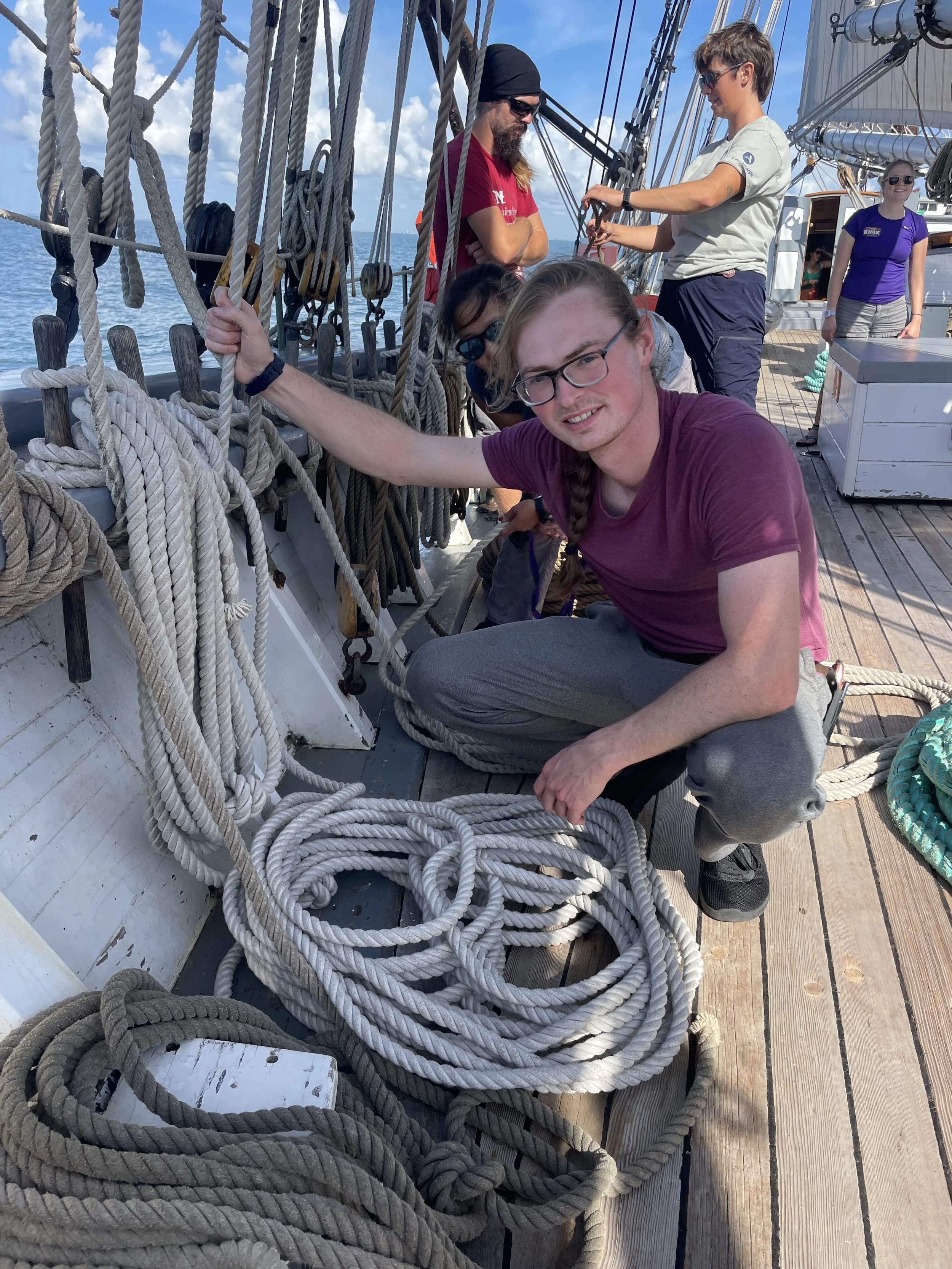 But, despite the change of plans, the day has been mostly smooth sailing (with the exception of some seasickness amongst the crew… OK, maybe it was just me who got sick, but who’s counting). There’s 18 of us aboard, so it’s a little crowded, but spirits have been high. The outgoing crew, despite coming off of many months straight of high-intensity boat life, have been incredibly patient and generous teachers. I feel deeply grateful to be here and to be learning from a crew with so much skill, kindness, and heart. And they said sailors were supposed to be mean!
