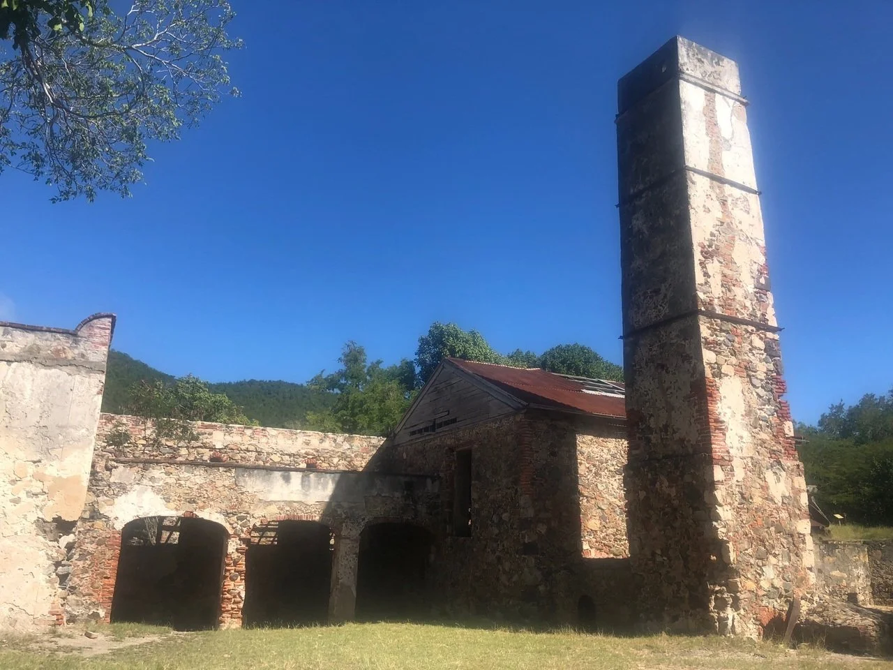 Early this morning, after our lovely breakfast of french toast casserole, we went over emergency protocols. We learned what to do and covered everyone's job in case of a man overboard, a fire, and abandon ship. Then we headed out on the dories to Maho Beach in Saint John, where we had a long day ahead of us. Saint John has a national park, and we planned to take a hike through it and land on Reef Bay. Along the way, there were several plaques containing details about trees, ruins, and fruit bearing plants. Some topics included: lime trees, mango trees, pineapple plants, and rum trees. Part of the hike was an old cart path dating from the 18th and 19th century.