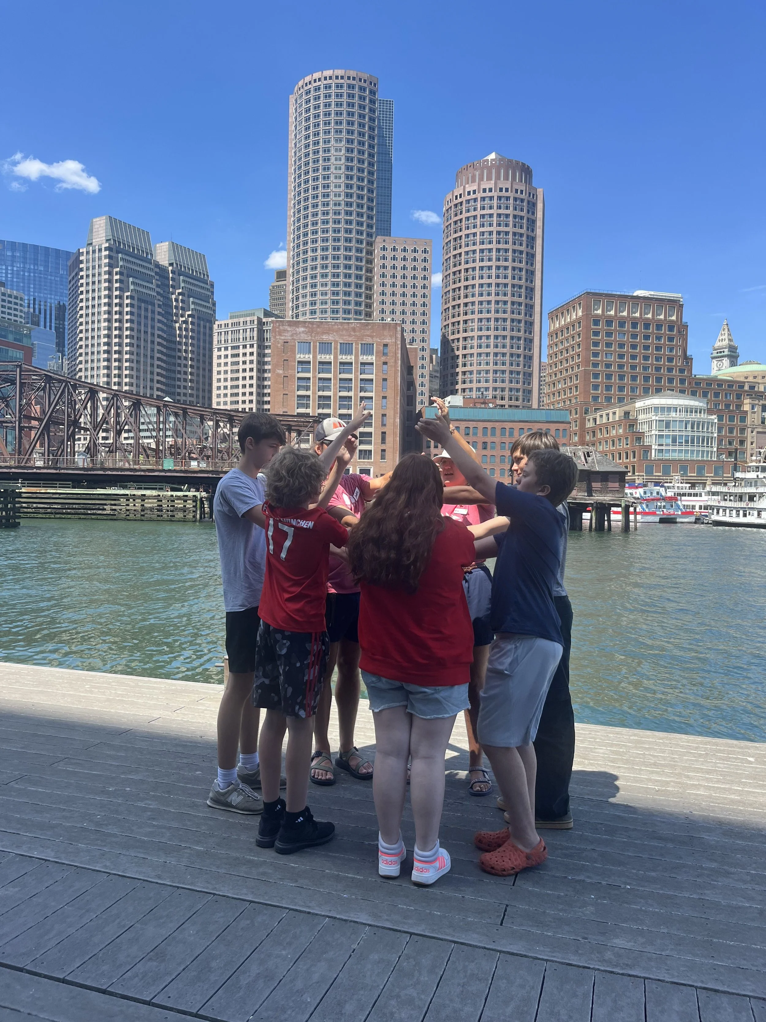 Today we left Boston Harbor while boating because the wind was against us. We took a swim test today to determine if we could swim for the rest of the week. Dinner was quite good and so was lunch. We've stopped for the night in eye distance of Boston.