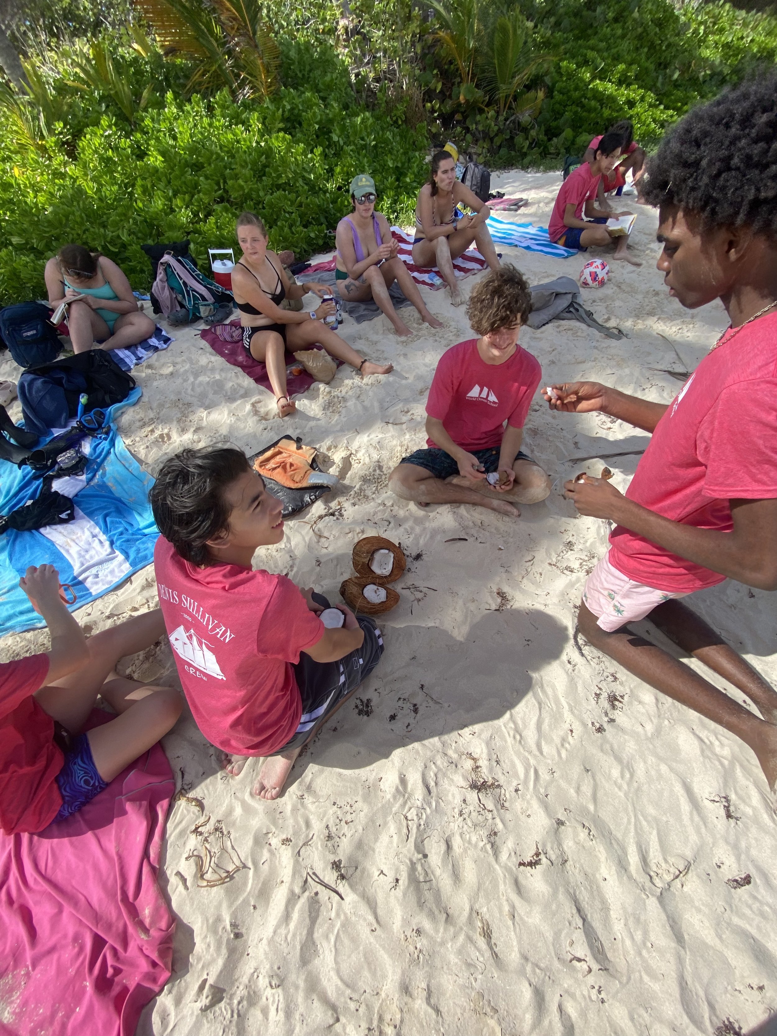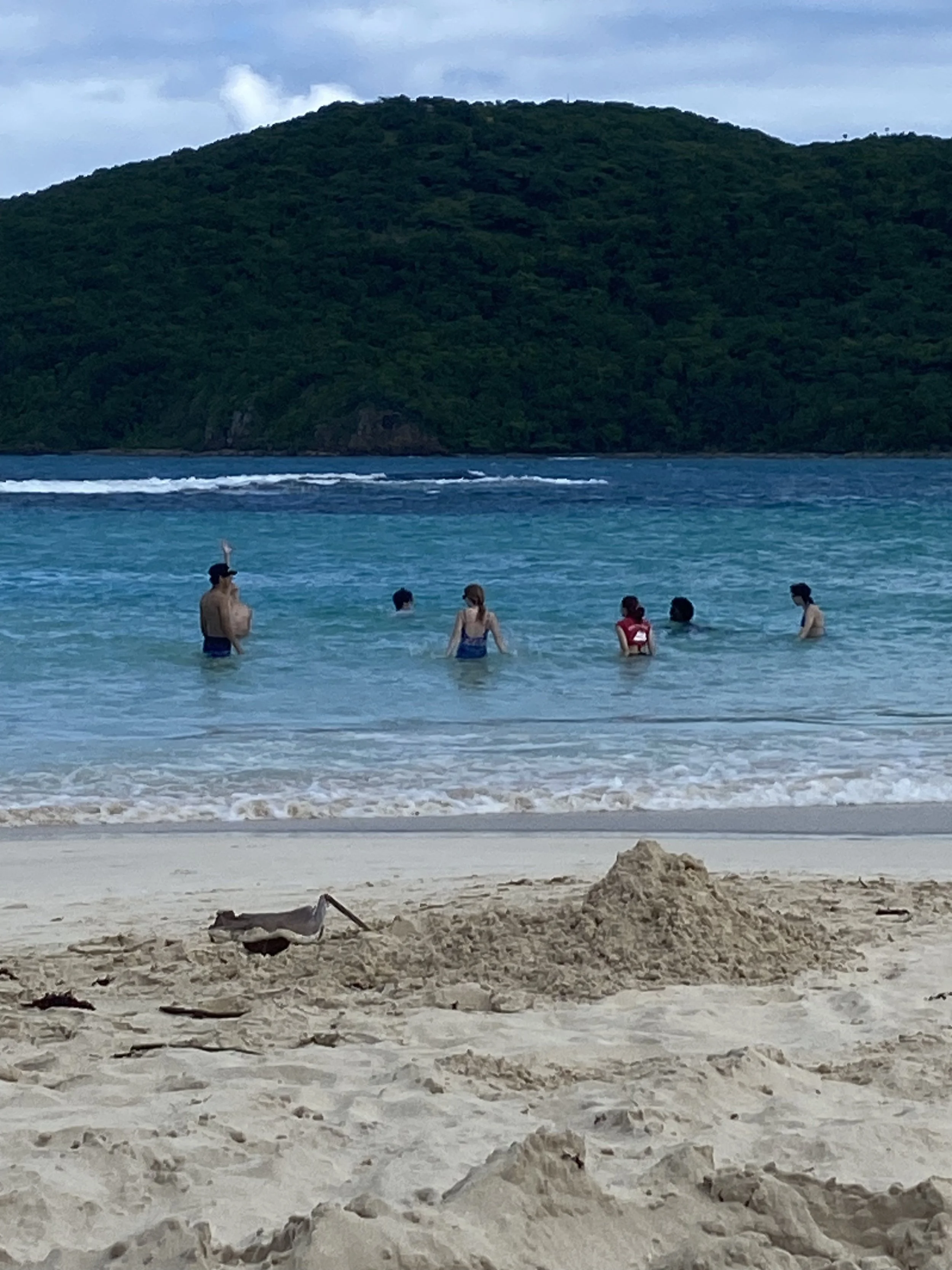 We played beach games, hiked rocks, and climbed abandoned tanks from the days of amphibious invasions. Too much time was spent attempting to open fallen coconuts, but after we (Daniel) opened it we were rewarded with sweet coconut and a greater affinity for our caveman origins. We did NOT buy food, which is against the rules. We cannot attest to the quality of their empanadas. A rainbow, hermit crabs, and a beached Aliyu were spotted.