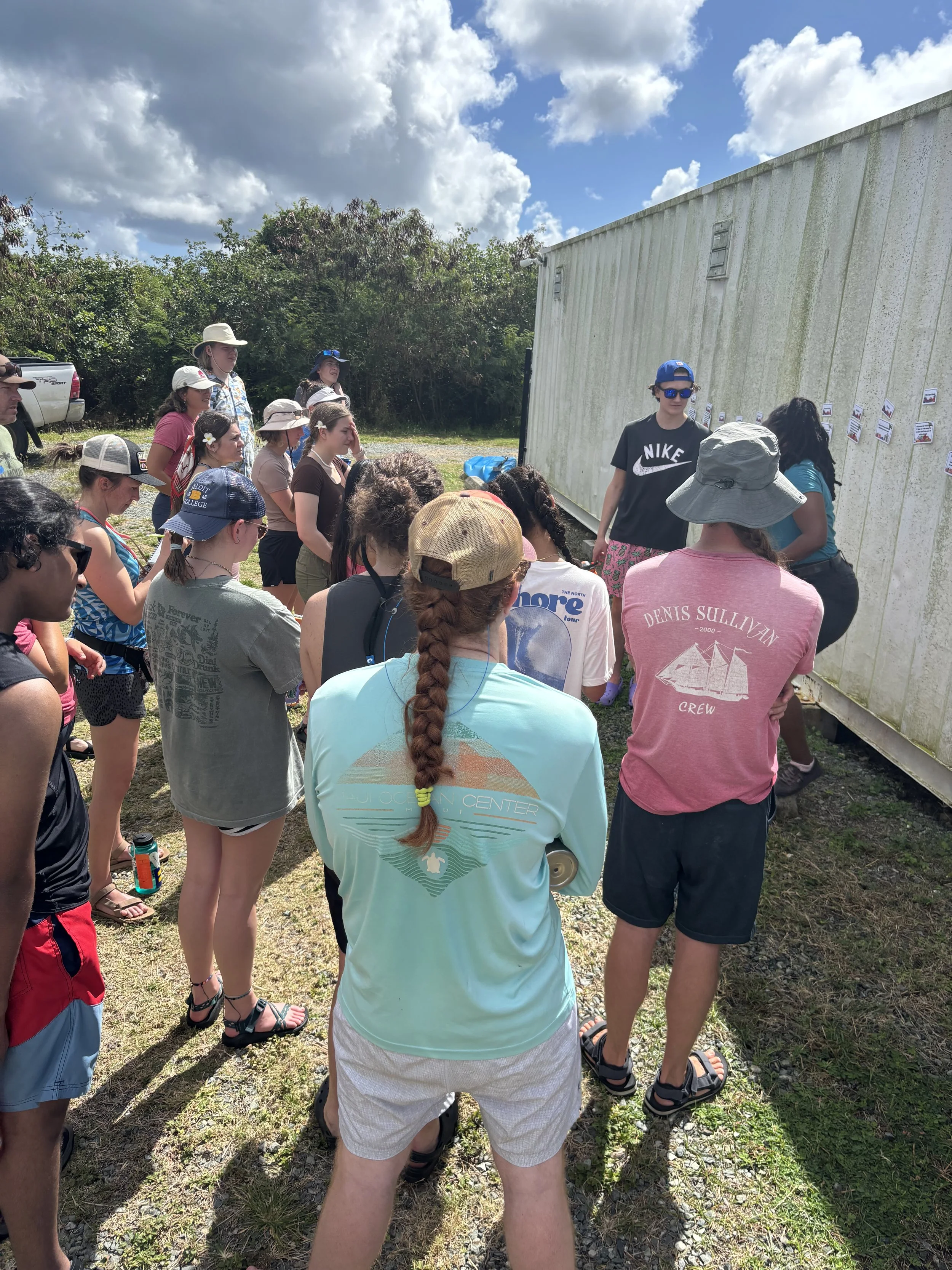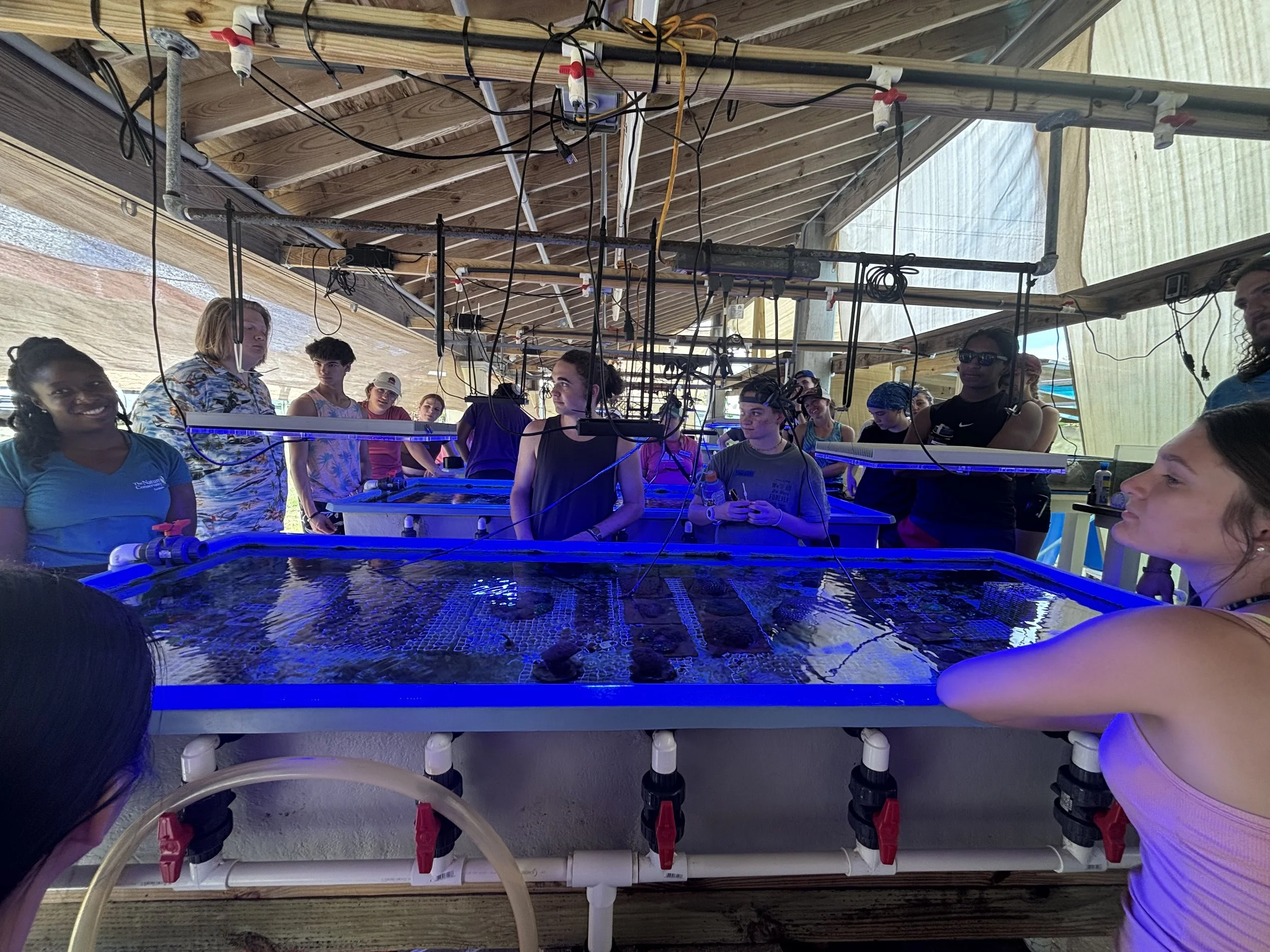 By 8:00 we we’re on the deck and ready to feast. We had scrambled eggs, fruit, and latkes. Then we did chores after breakfast, which consisted of cleaning the head and soles of the main hold. For those of you who don’t know, a head is the toilet and the sole is the floor. To our surprise it was not as bad as we thought it would be. Then we started our journey to the Coral Reef Conservation institute in a motor-boat which then we got into a taxi with fun music. After this, we went to the Coral Reef Conservation institute, where we learned about coral and how the process of fragmentation includes cutting them, regrowing them, and releasing them back into the wild. They used this data to better understand how they grow and how to prevent future coral damage within ecosystems. One of the few things we found interesting was a thing called Zooxanthellae. Zooxanthellae is a microorganism that goes inside of the coral and photosynthesises. When this happens various colors are phenotypically noticeable. This is the color you see on coral. Fun Fact, coral is actually a community of tiny organisms made up of zooxanthellae and coral polyps which are the actual organism surrounded by the coral structure and are very tiny/see through.
