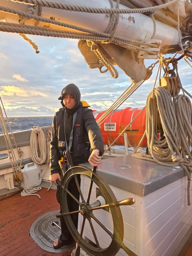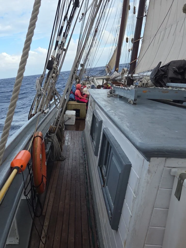 Hi everyone, this is A watch reporting live from our 2000 to 0000 shift today we started the day at 0000 for watch. We did bowls while trying not to wake the main hold. It was more extreme than past night but there were so many stars and constellations that it was worth it. Over the past two watches we have received terrible weather that magically clears up when the next watch arrives. This morning we tried tuna and did a great job cleaning up. Ari and London went aloft during our shift, roughly 55 feet in the air. We also had our periods of license where our group has a different costume. Ours was America and we all dressed up as American characters like Uncle Sam and Lady Liberty. We then proudly sung the national anthem. Everybody did a lot of journally. We were motivated by Dr. Davis's speech about our fleeting memories on OLP. A watch is completing squatical miles which is one squat per nautical mile and we have reached 200 collectively today. We are currently on watch until midnight, enjoying our last couple days. We are still expecting to make adventure in our next couple days so if you see rain or thunder you can always count on A watch to be there. Signing off for the night, goodbye.