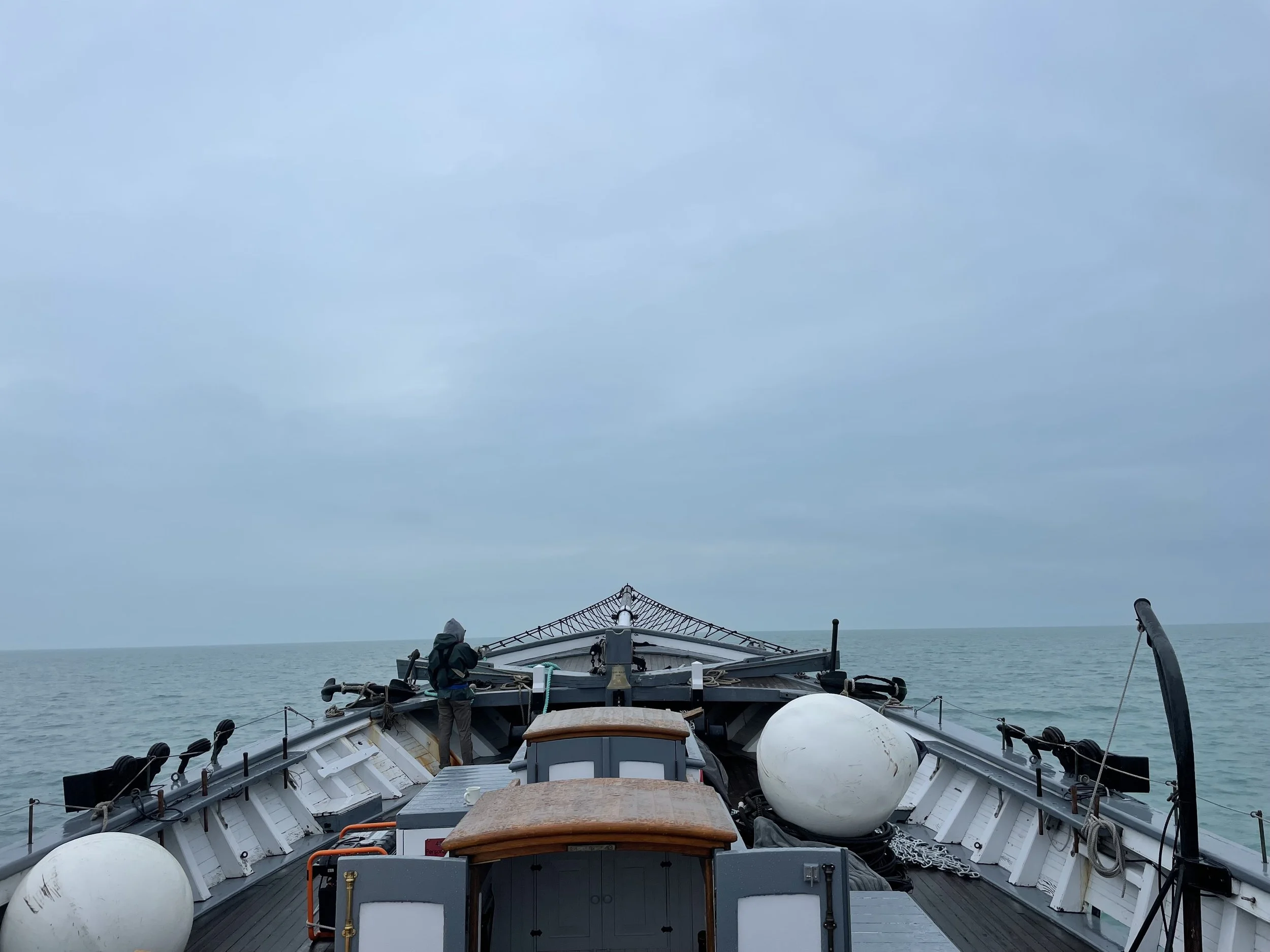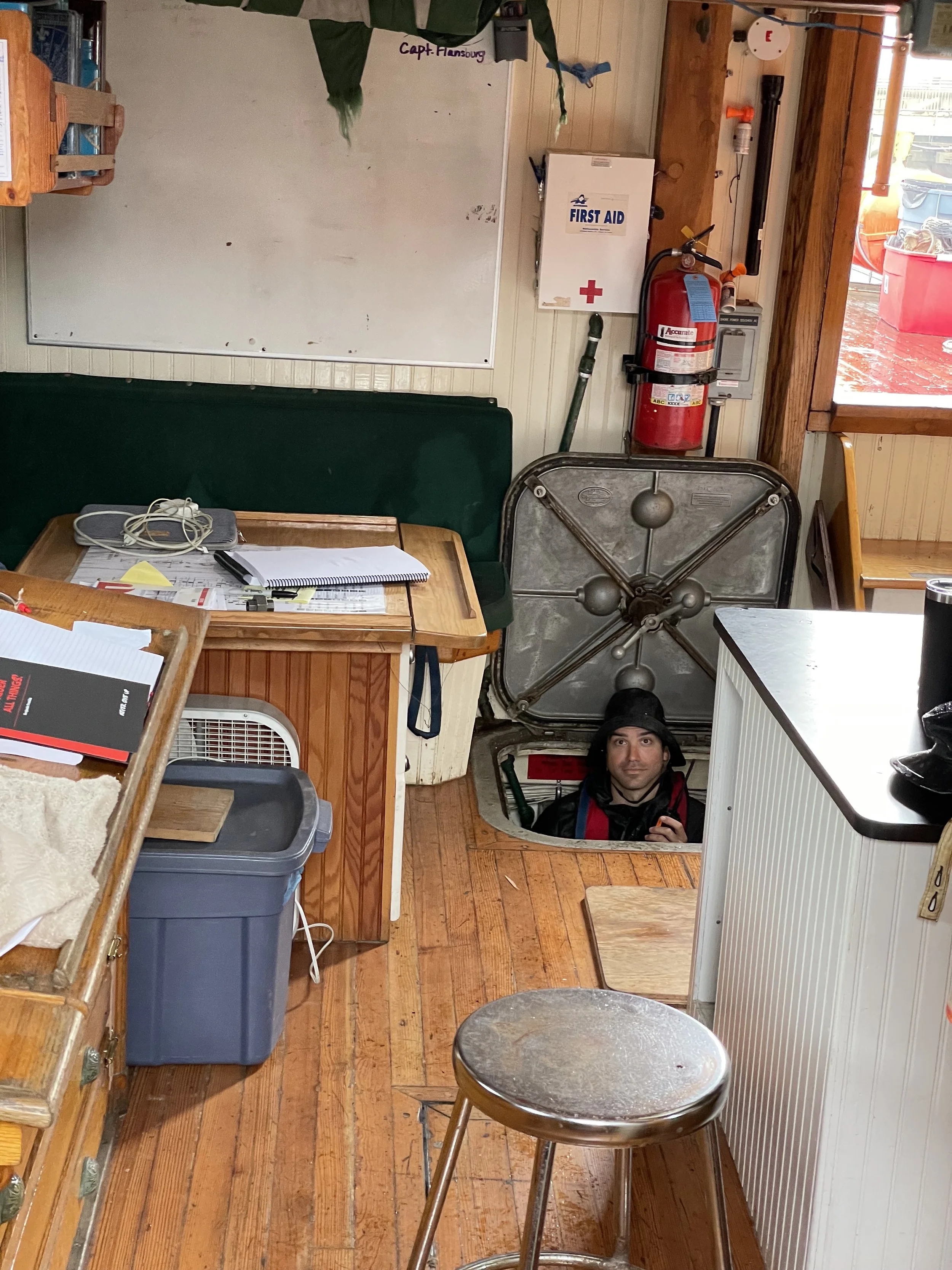 This morning began with 0800 breakfast of eggs, potatoes, and toast. Being new to the vessel as we are, we’re still figuring out the rhythm of life on board. Where should the coffeemaker live in the galley? Where are those new sponges we bought yesterday? How much rain comes in the emergency hatch if we open it for fresh air?