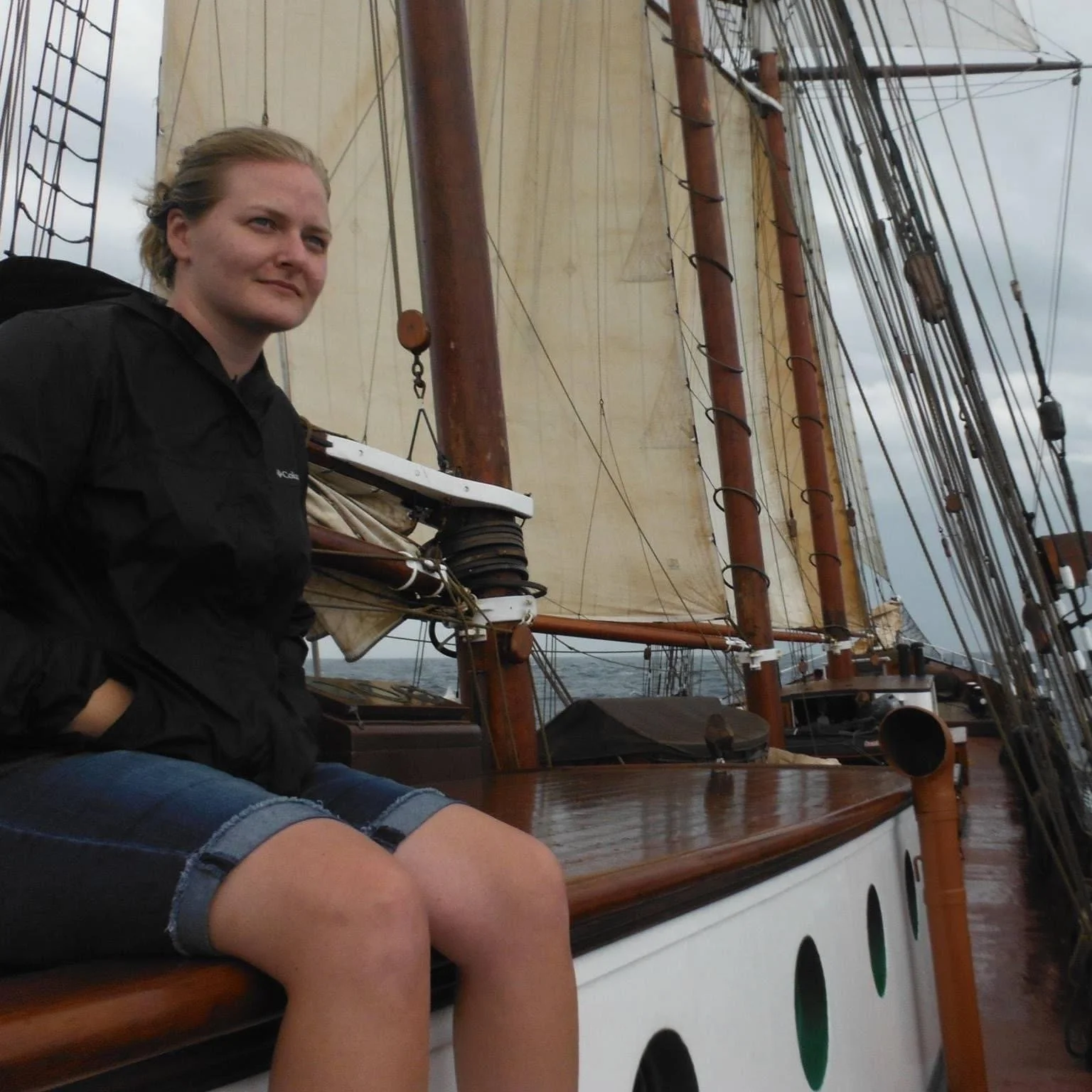 Jen comes from a long line of farmers and carpenters with most of her boat experience being canoes and kayaks until she decided to try a transatlantic guest crew experience on board Oosterschelde in 2016. Immediately hooked, she pursued sailing professionally. After working on a variety of vessels full-time - primarily Pride of Baltimore II and Angelique - Jen is enjoying being able to do relief work aboard Roseway and Denis Sullivan. When she’s not sailing she substitute teaches and spends time on house projects, gardening, and hanging out with her husband.