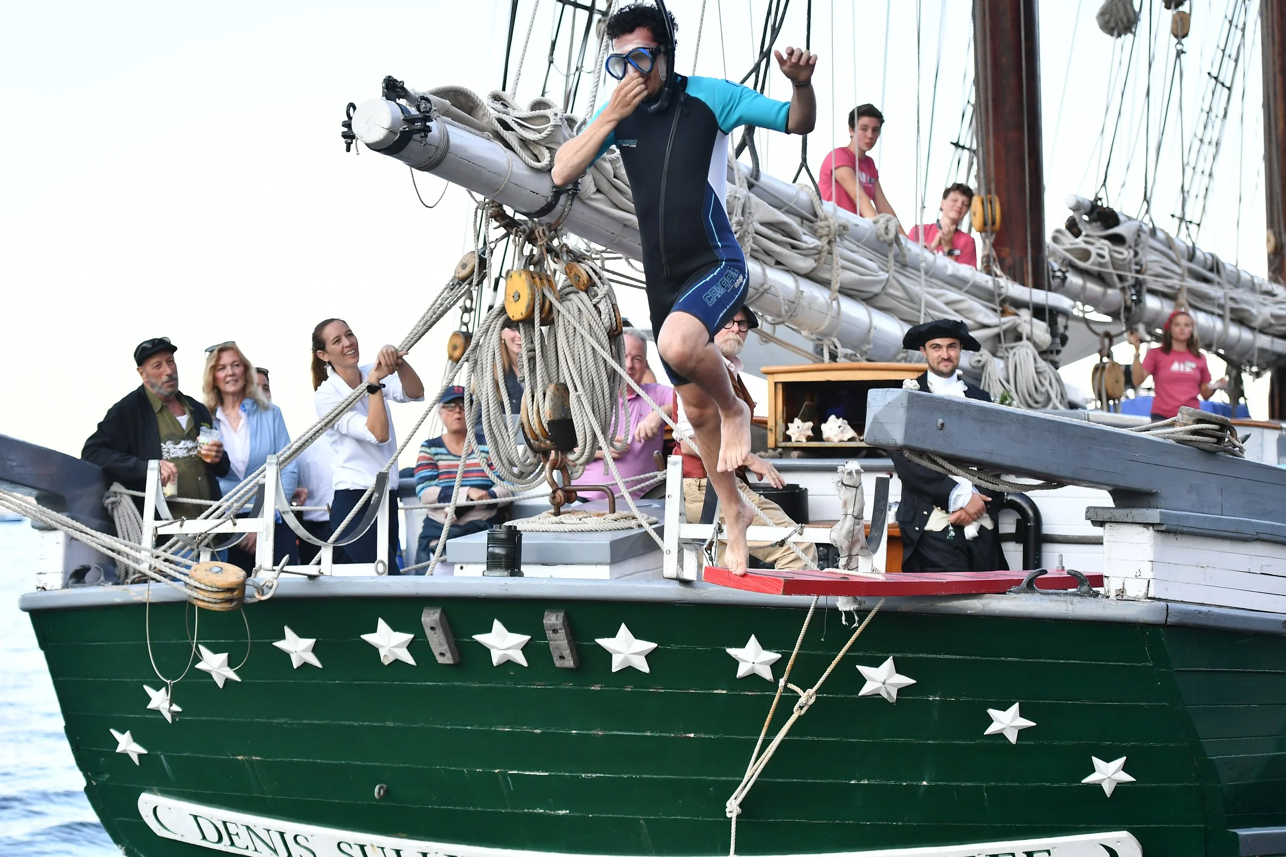 Each year brave fundraisers compete for the honor of walking the plank off the 137’ schooner Denis Sullivan into Boston Harbor.